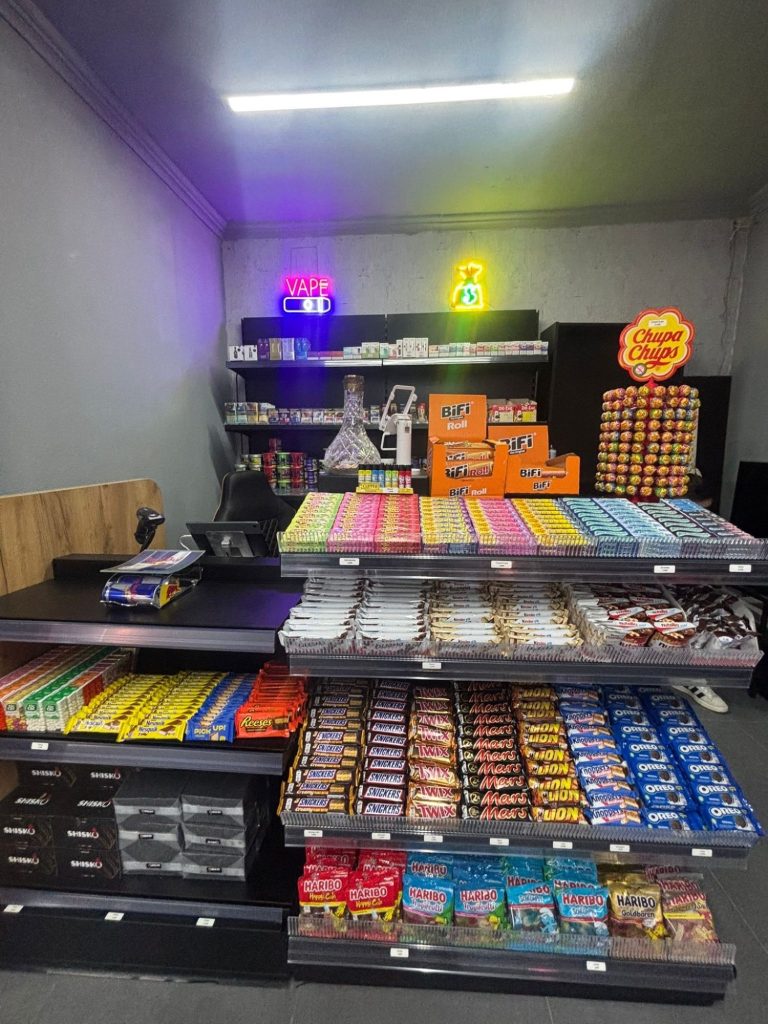 Wir haben eine große Auswahl an Snacks, Getränken, Zigaretten, Shishas, Shisha Tabak und Shisha Zubehör für euch im Laden.
