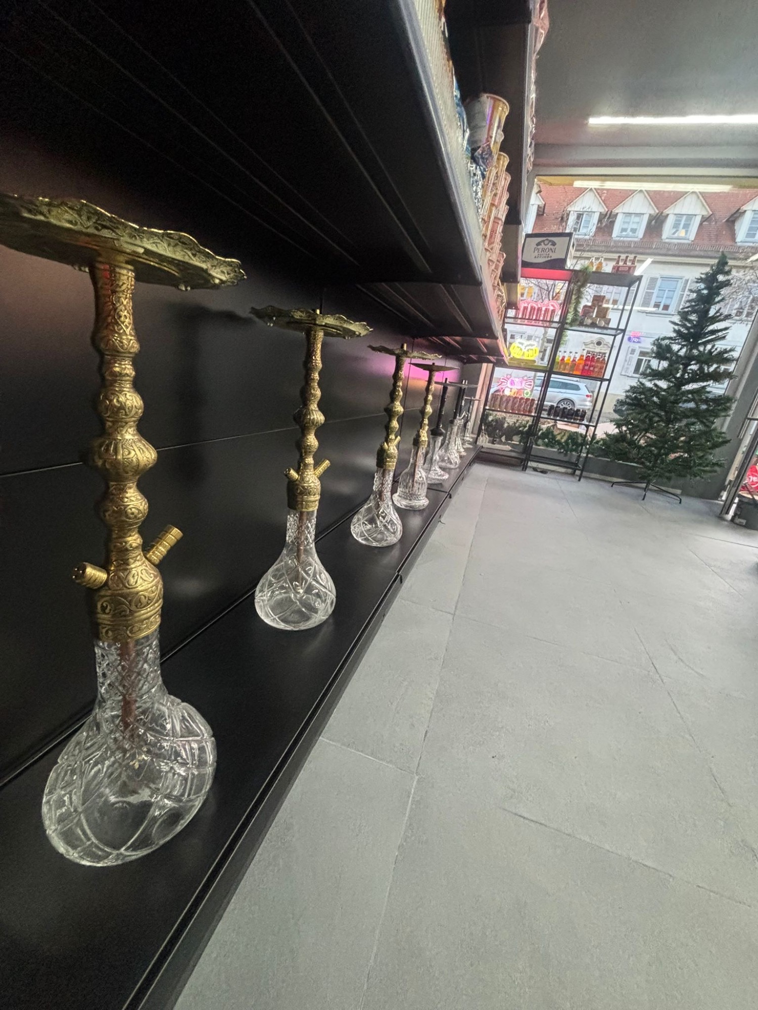 Wir haben eine große Auswahl an Snacks, Getränken, Zigaretten, Shishas, Shisha Tabak und Shisha Zubehör für euch im Laden.